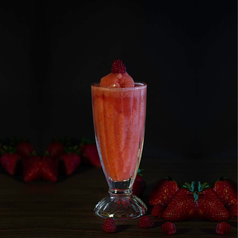 Un iceberg elaborado con nuestro hielo base mezclado con fresas y frambuesas selectas